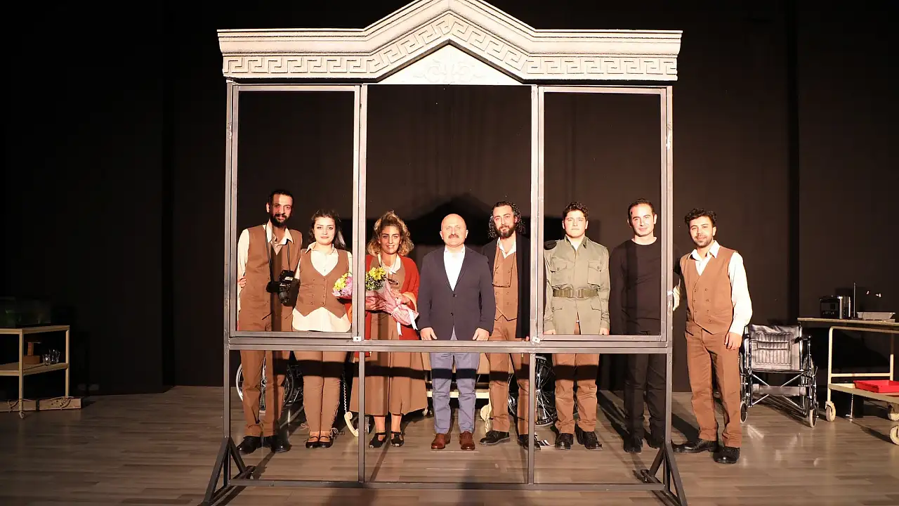 Ağrı'da, Devlet Tiyatrosu tarafından gösterimi gerçekleştirilen 'Eğer Bu Bir Film Olsaydı' adlı tiyatro oyununu sergilendi.