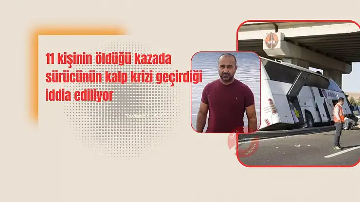 Ağrı'dan İzmir'e giderken Ankara'da köprü ayağına çarparak 11 kişinin ölümüne neden olan otobüsün sürücüsünün kalp krizi geçirdiği iddia edildi.