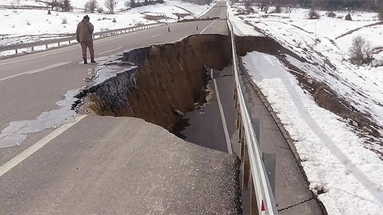 Birçok ili birbirine bağlayan karayolunda 10 metre uzunluğunda 4 metre genişliğinde göçük oluştu.
