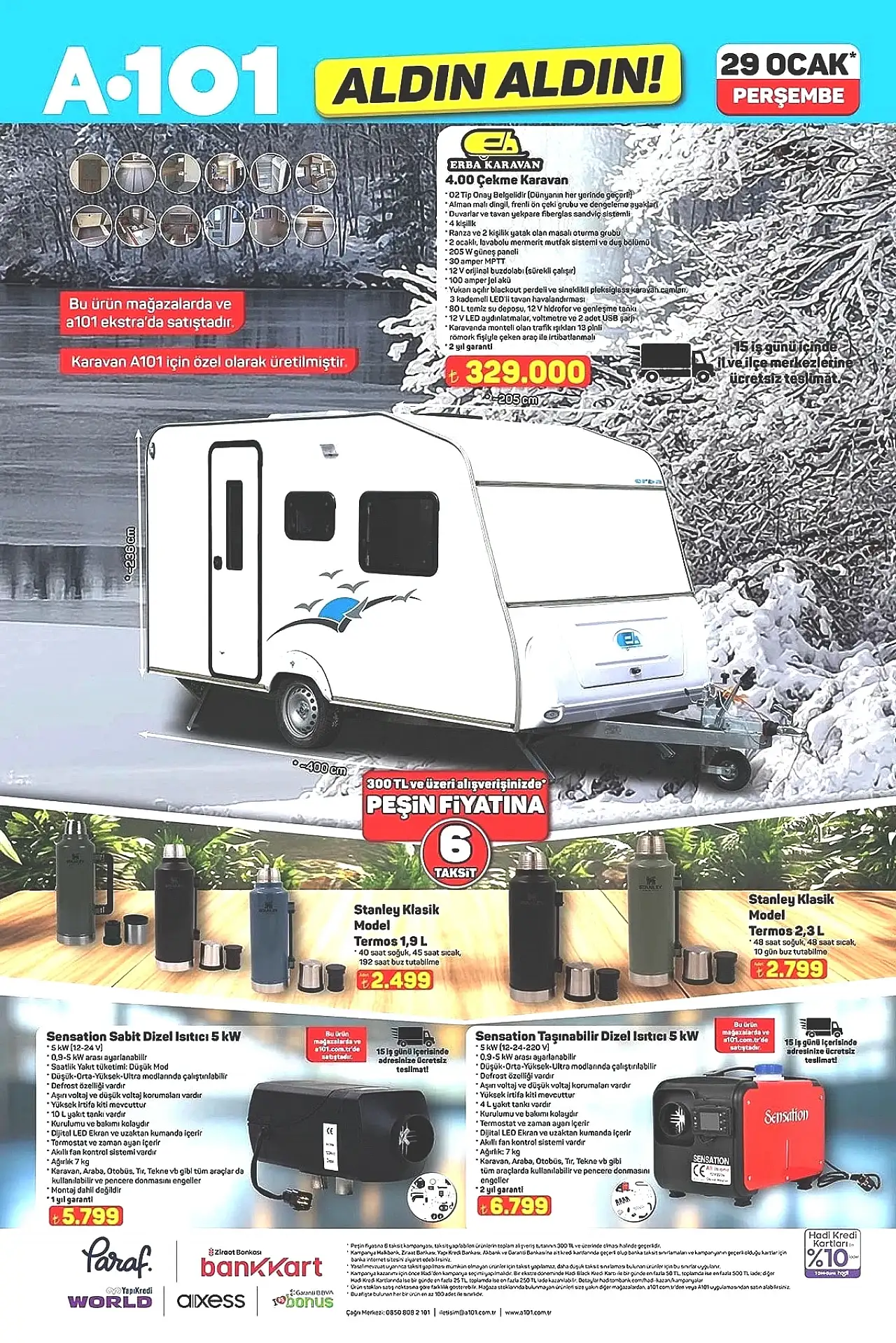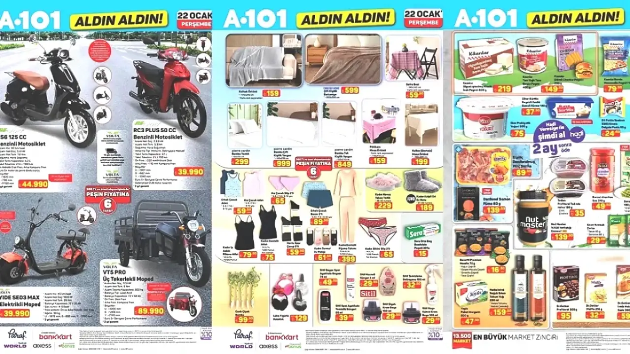 29 Ocak 2026 Perşembe günü raflarda yer alacak aktüel ürünler arasında, küçük ev aletleri, mutfak malzemeleri, elektronik ürünler, tekstil ürünleri, kişisel bakım eşyaları ve ev dekorasyon ürünleri de yer alıyor. Her hafta belirli sayıda gelen kampanyalı ürünler, “Aldın Aldın” etiketiyle hem mağazalarda hem de A101’in online satış platformunda satışa sunuluyor.