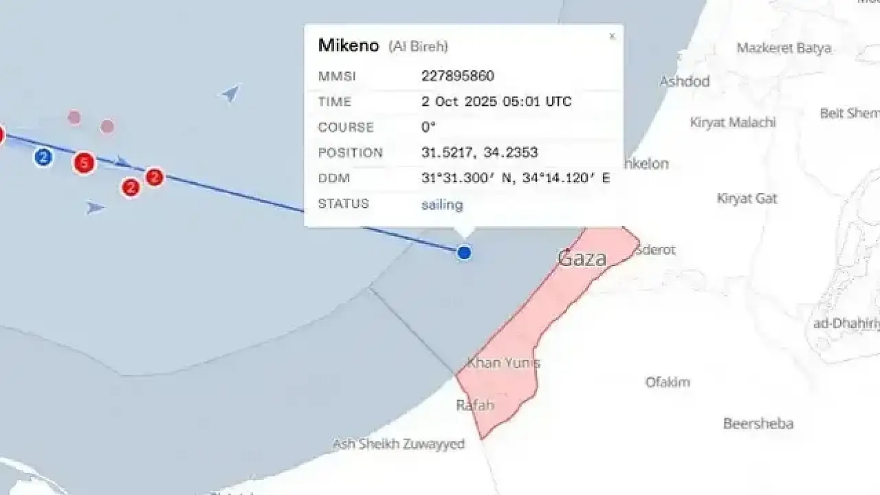 Küresel Sumud Filosu'nda yer alan Mikeno isimli gemi Gazze karasularına ulaştı. Filonun canlı takip sisteminde yer alan bilgilere göre Mikeno, beraberindeki Fair Lady ve Adagio ile birlikte İsrail ablukasını aşmayı başardı.