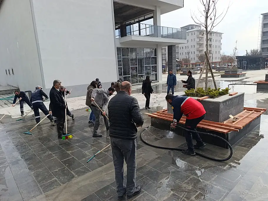 Açılışa saatler kala Başkan Aras temizlik çalışmalarına katıldı