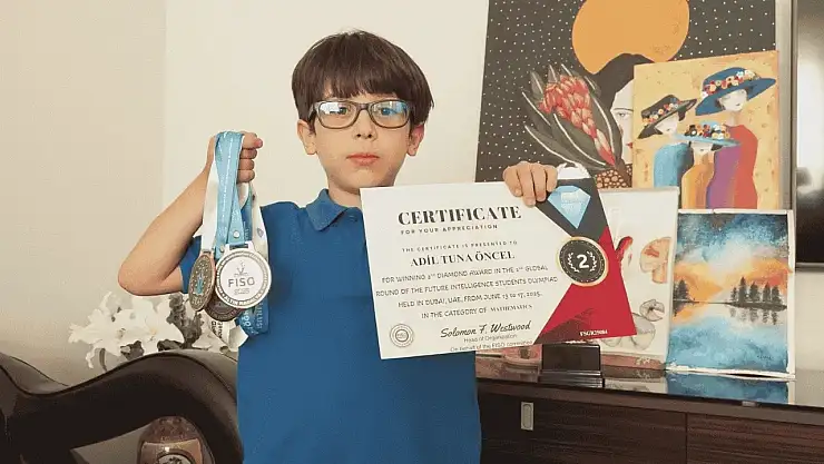 Henüz ilkokul çağında ama zekâsı ve başarılarıyla şimdiden dünya sahnesine adını yazdırdı. Dubai’de düzenlenen ‘Geleceğin Dahileri Öğrenci Olimpiyatları’nda dünya şampiyonu olan 7 yaşındaki Adil Tuna Öncel, Türkiye’nin gururu oldu. Matematikte sergilediği olağanüstü performansla rakiplerini geride bırakan Adil Tuna, şimdi herkesin merak konusu: Kim bu küçük dahi?