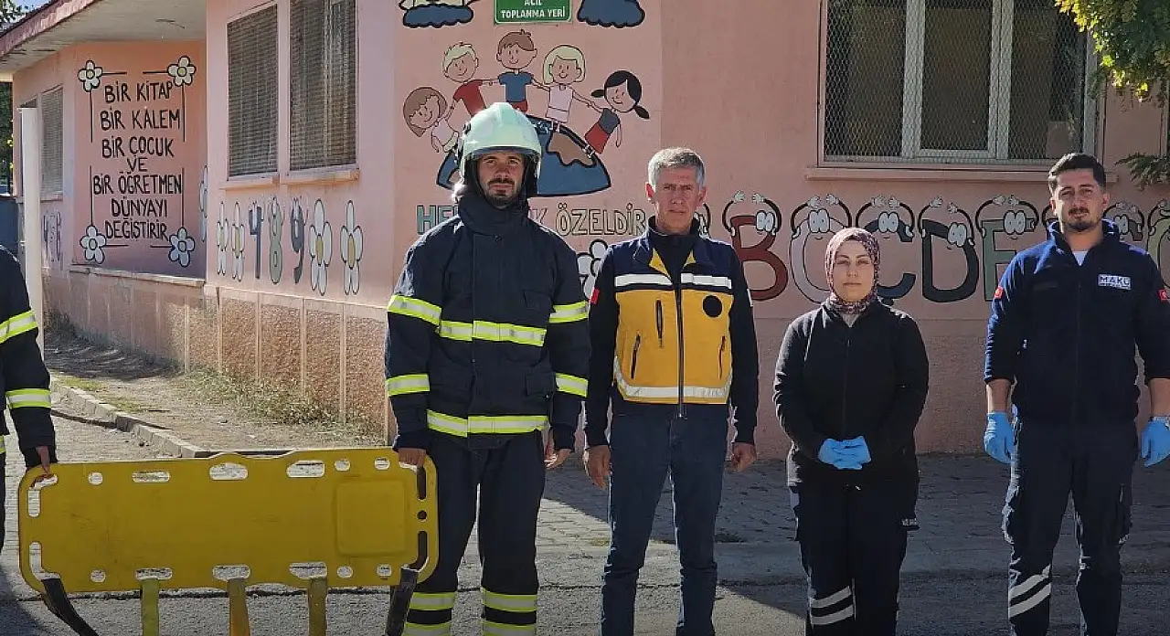 Dünya Afet Risklerinin Azaltılması Günü kapsamında, Kazım Karabekir İlkokulu'nda öğrencilerin küçük çaplı yangınlara karşı bilinçlenmesi amacıyla yangın söndürme tatbikatı yapıldı.