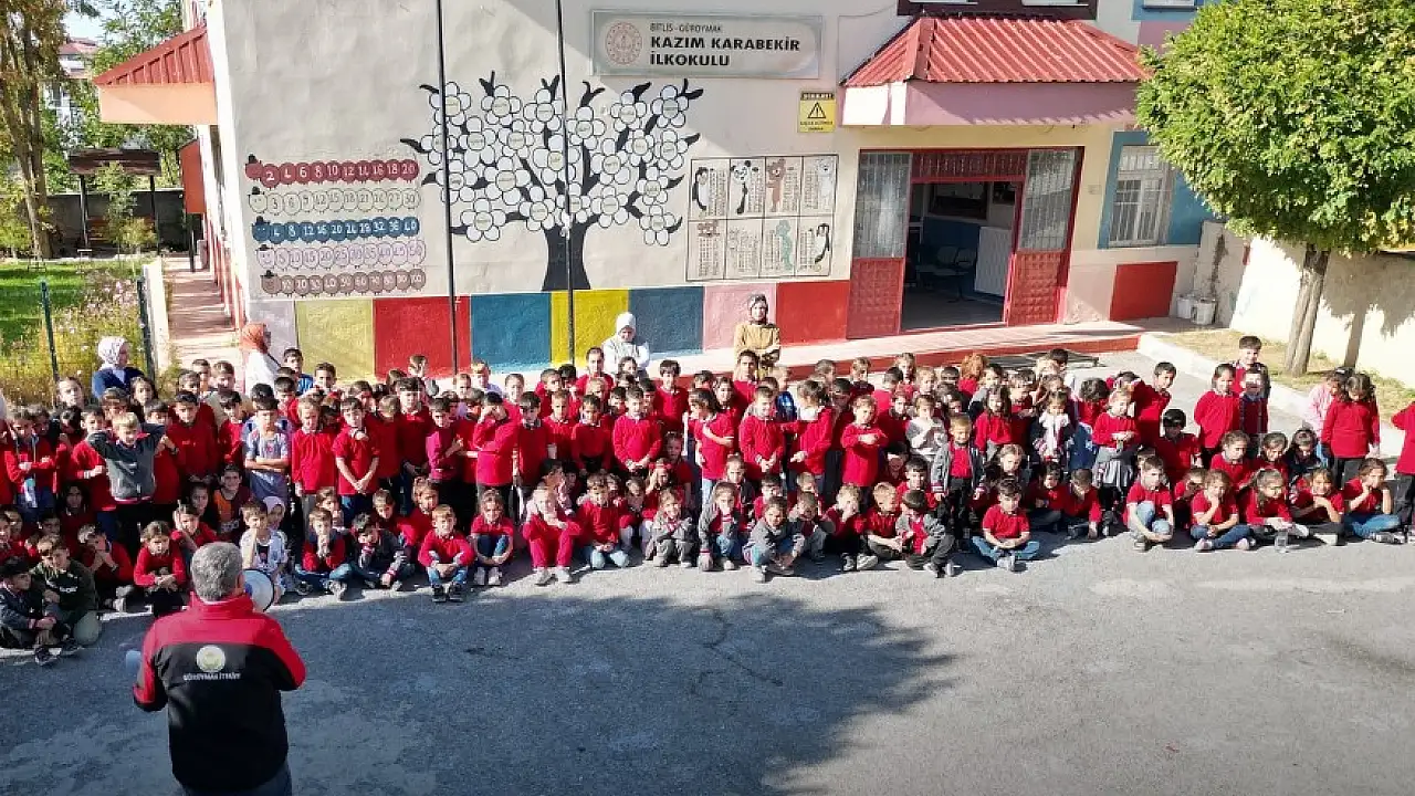 Dünya Afet Risklerinin Azaltılması Günü kapsamında, Güroymak Belediyesi ve Kazım Karabekir İlkokulu iş birliğiyle önemli bir etkinlik gerçekleştirildi. Okul öğrencilerinin olası küçük çaplı yangınlara karşı bilinçlenmesi ve afetlere karşı hazırlıklı bireyler olarak yetişmesi amacıyla yangın söndürme tatbikatı düzenlendi.