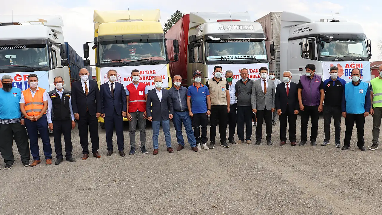 Yurdun çeşitli illerinde meydana gelen sel ve yangın felaketinden etkilenen vatandaşlara destek olmak amacıyla başlatılan 'Ben De Varım' kampanyası kapsamında Ağrı ve ilçelerinden toplanan 4 tır yardım malzemesi, afet bölgelerine gönderildi