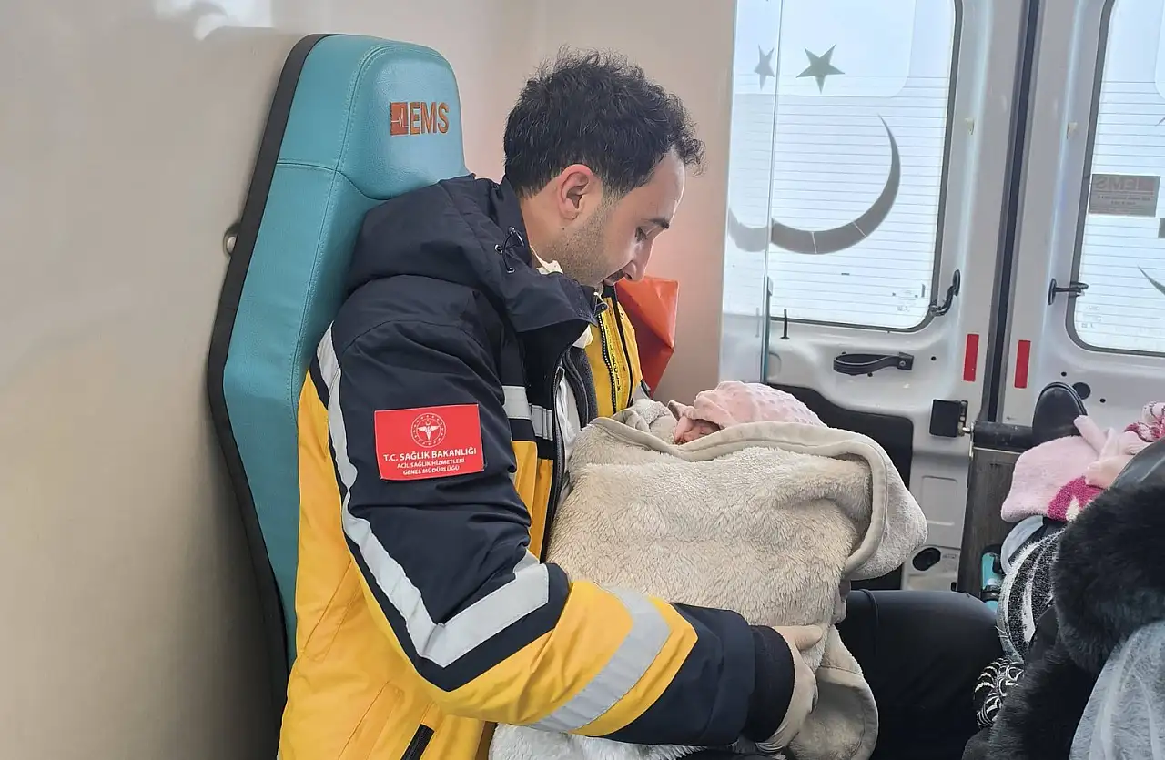 Zorlu kış şartları ve coğrafi koşullara rağmen kısa sürede mezraya ulaşan 112 Acil Sağlık ekipleri, doğum eyleminin ilerlemesi nedeniyle anne adayını sağlık kuruluşuna sevk edemeden, gerekli tüm tıbbi önlemleri alarak evde doğumu güvenli bir şekilde gerçekleştirdi.