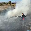 Ağrı merkeze bağlı Çukurçayır Köyünde meydana gelen saman yangını sonucu bölgede bulunan samanlar küle döndü.