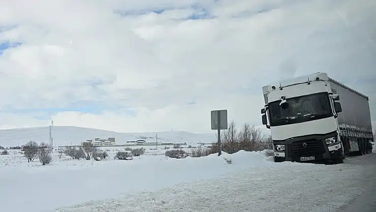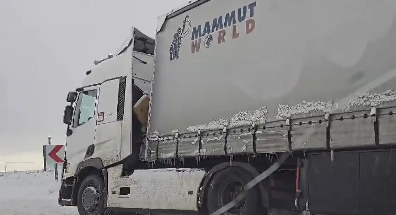 Karaköse Haber muhabirinin edindiği bilgilere göre, tırın sabah saatlerinde ön sağ bölümünün kar yığını içerisine gömüldüğü anlaşıldı.Yoğun kar yağışı ve gece boyunca etkisini sürdüren soğuk hava nedeniyle karın sertleştiği, bu durumun aracın hareket etmesini engellediği öğrenildi.