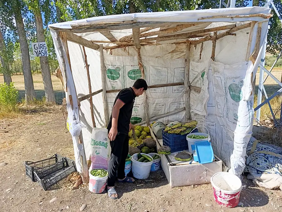 Ağrı'nın Yazıcı Baraj yolu üzerinde yaz mevsiminin bereketi vatandaşlarla buluşuyor.