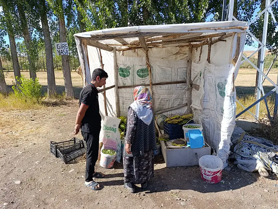 Ağrı'nın Yazıcı Baraj yolu üzerinde yaz mevsiminin bereketi vatandaşlarla buluşuyor.