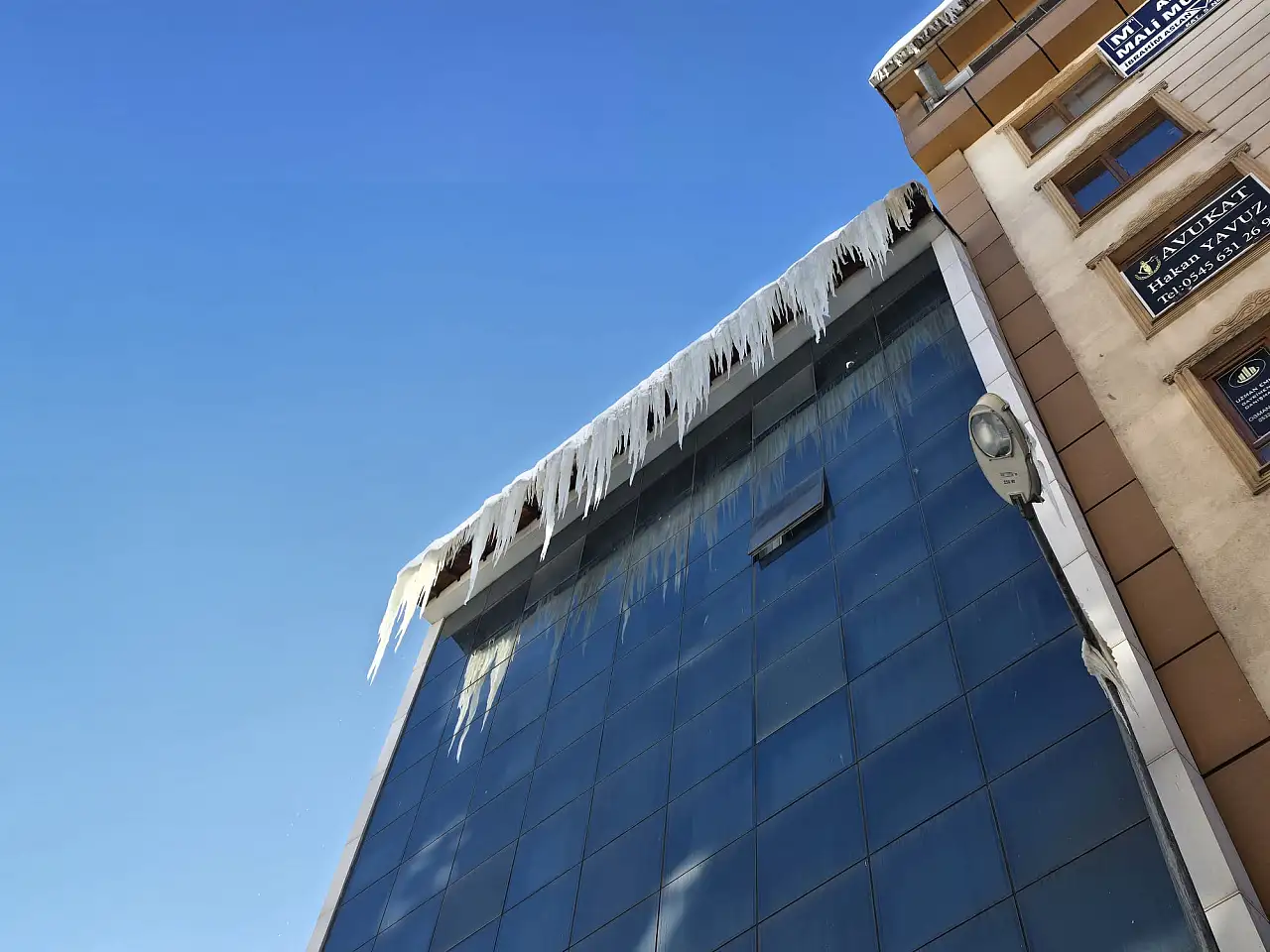 Ağrı’da günlerdir etkili olan yoğun kar yağışı ve ardından hava sıcaklıklarının sıfırın altına düşmesi, kent genelinde günlük yaşamı olumsuz etkilemeye devam ediyor. Soğuk hava koşulları nedeniyle birçok noktada tabela, bina çatısı ve saçaklarda oluşan buz sarkıtları, yayalar için risk oluşturuyor. Karın erimesi ve yeniden donması sonucu oluşan buz sarkıtları, başta iş yerlerinin tabelaları ve apartman çatılarında yoğunlaştı. Aynı zamanda çatılarda ve ağaç dallarında biriken kar kütleleri de olası düşme riskleriyle dikkat çekiyor.