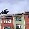 Ağrı'da etkili olan soğuk hava nedeniyle bina saçaklarında oluşan ve yaya güvenliğini tehdit eden buz sarkıtları, belediye ekiplerinin çalışmasıyla kontrollü şekilde temizleniyor.