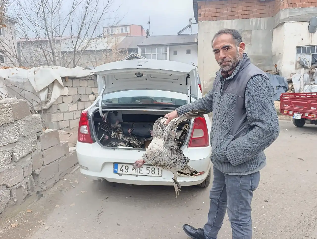 Ağrı Sebze Pazarı’nda satış yapan esnafların büyük bir bölümü, köylerinde ya da kendi bahçelerinde besledikleri hayvanları pazara getirerek satışa sunuyor. Bazı satıcılar ise yetiştirdikleri hindileri araçlarının bagajında satışa çıkarıyor. Bu görüntülerin, yıllardır pazarda değişmeden devam ettiği ifade ediliyor.