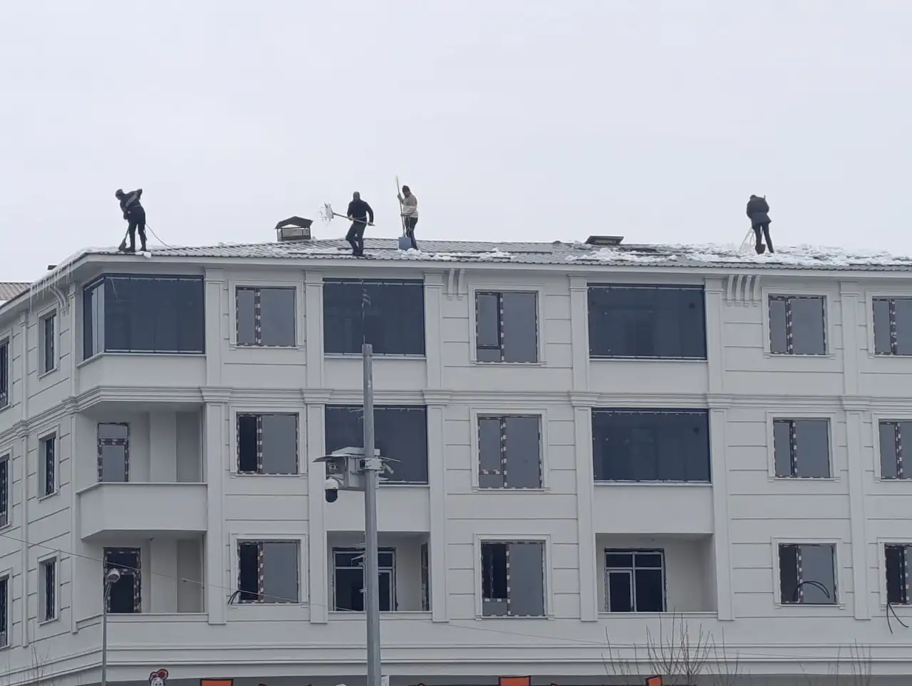 Bu süreçte, “çatı kar tutucu aparatları” bina sahiplerini yakından ilgilendiren bir mesele haline geldi. Şehir genelinde bu sistemlerin yaygınlığı tartışılırken, bugün Fırat Mahallesi’nde bir binanın çatısında çatı kar tutucu aparatının olmasına rağmen çatıda kar temizliği yapıldığı görüldü.