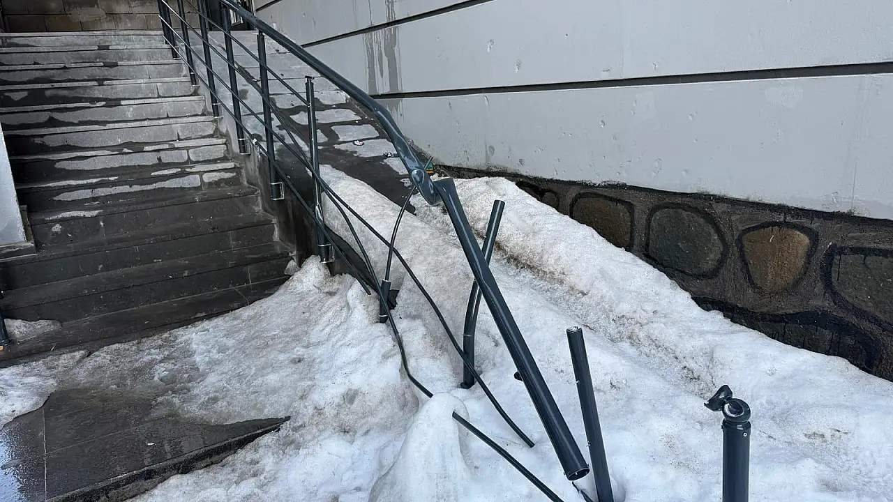 Merdiven bölümündeki demir korkuluklarda eğilme ve deformasyon oluştu.