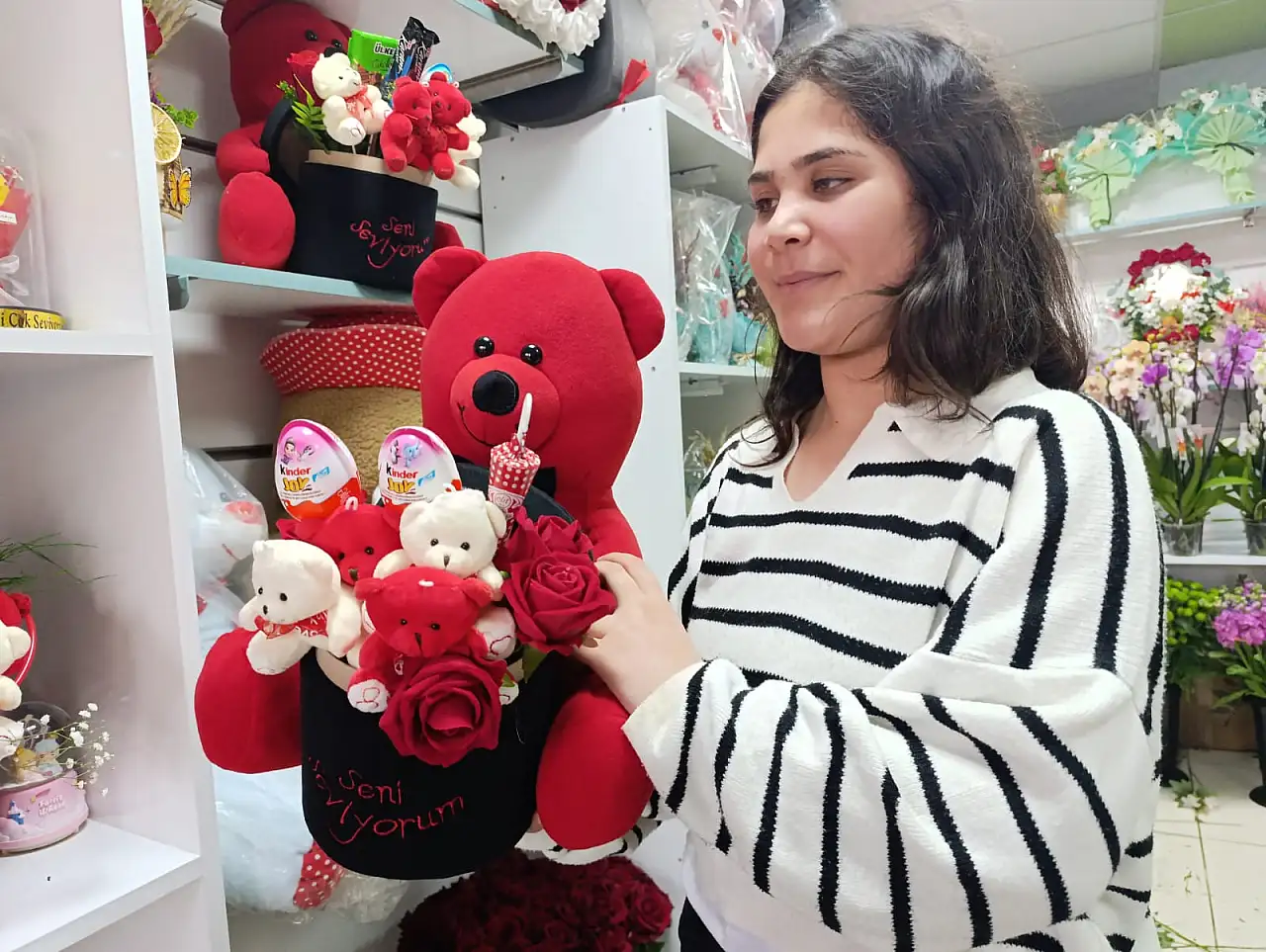 Ağrı'da 14 Şubat dolayısıyla çiçek satışlarında artış yaşandı. Ayıcıklı çiçek sepetleri Sevgililer Günü'nde öne çıktı.