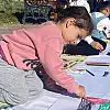 Masaların etrafında toplanan çocuklar, Filistin bayrakları, barış güvercinleri ve umut dolu manzaralar çizerek duygularını resimlere yansıttı. Renkli kalemlerin kâğıtla buluştuğu etkinlikte her çizim, Gazze’deki çocuklara gönderilen küçük ama anlamlı bir dayanışma ifadesi haline geldi.