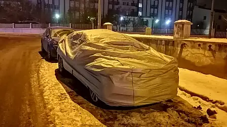 Hava sıcaklıklarının sıfırın altına düştüğü Ağrı'da, vatandaşlar araçlarını korumak için branda ve battaniyelerle önlem alıyor.