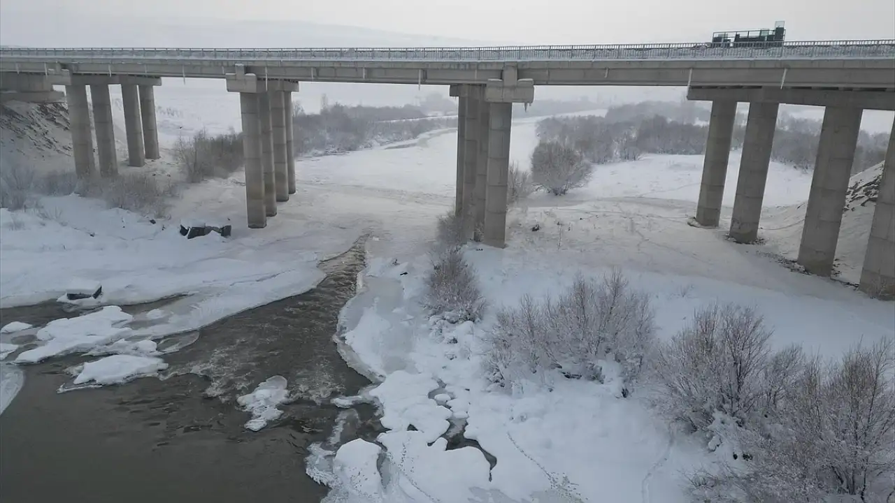 Ağrı'da devam eden dondurucu soğuklar, günlük yaşamı olumsuz etkilemeye devam ediyor. Nehir ve dereler tamamen donarken, şehirdeki çatılarda büyük buz sarkıtları oluştu. Özellikle Hamur ilçesinde buzla kaplı Murat Nehri, dronla görüntülendi.