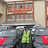 Ağrı'da düzenlenen araç töreninde Cemal, trafik polisi yeleğiyle gülümsetti