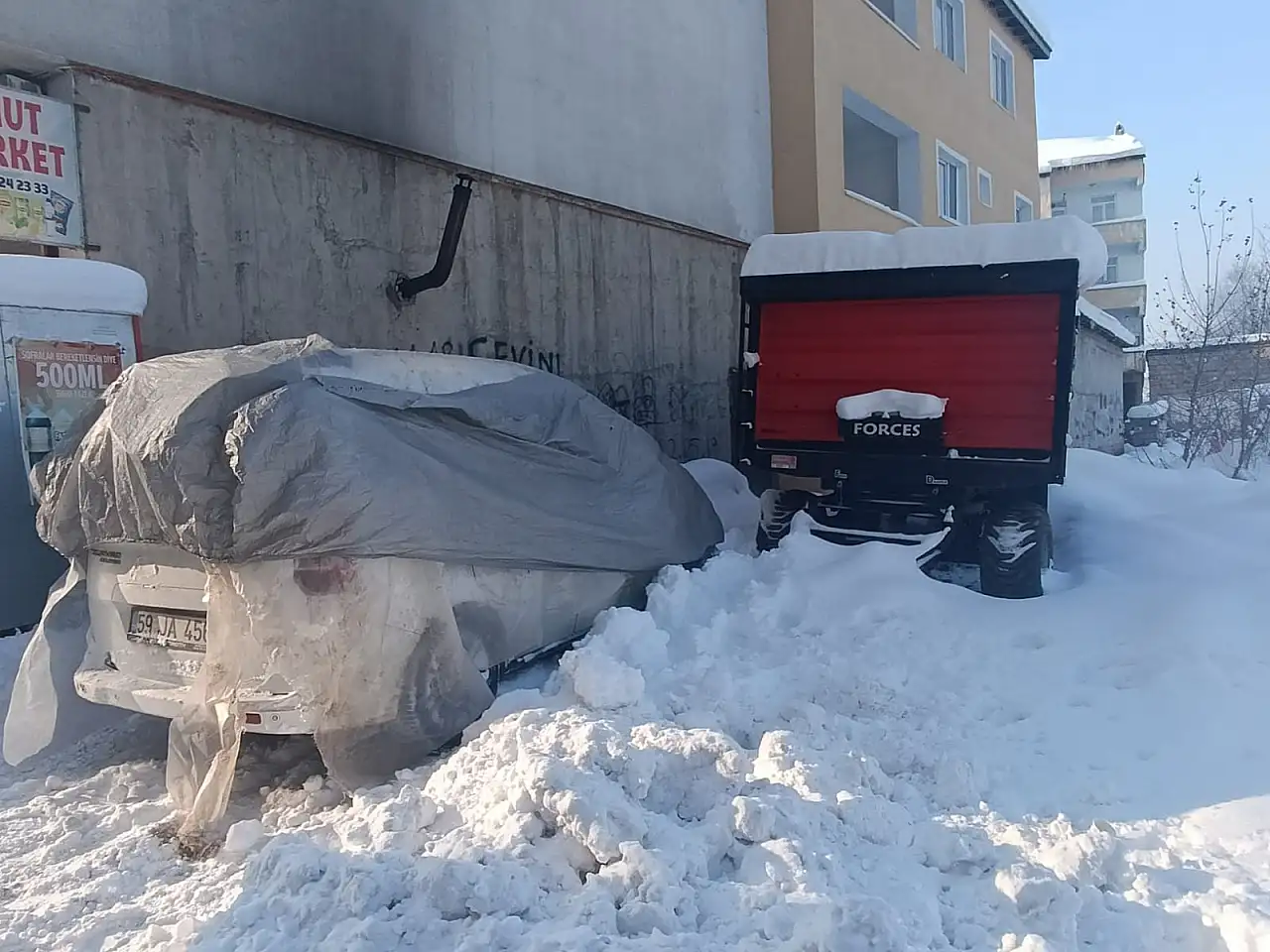 Ağrı’da etkili olan dondurucu soğuk hava ve kar yağışı, günlük yaşamı olduğu kadar araç kullanımını da zorlaştırıyor. Hava sıcaklıklarının gün boyunca eksi derecelerde seyretmesi nedeniyle vatandaşlar, araçlarını yalnızca gece değil gündüz saatlerinde de naylon ve brandalarla örtmek zorunda kalıyor.