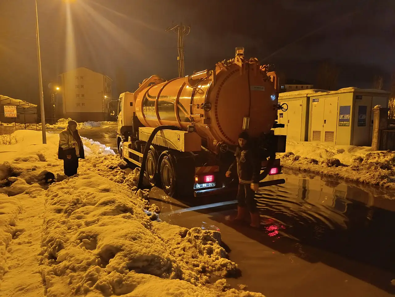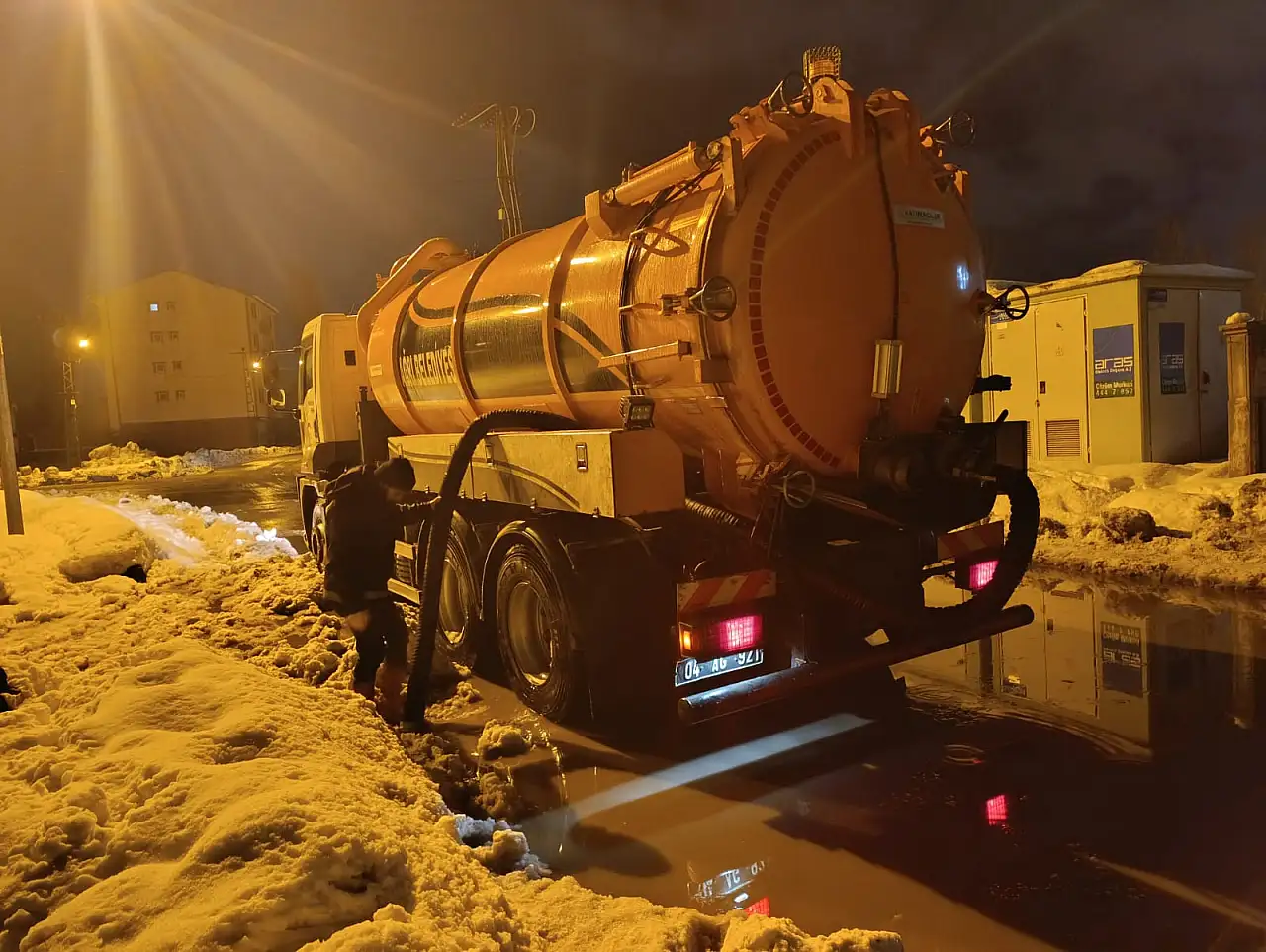 Mahalle sakinlerinin durumu bildirmesi üzerine belediye ekipleri kısa sürede bölgeye sevk edildi. Yapılan incelemede, kar kütlelerinin hızla erimesi ve yağmur suyu hatlarının debisinin artması nedeniyle suyun tahliye edilemediği belirlendi. Bunun üzerine ekipler, vidanjör yardımıyla biriken suları çekmeye başladı.