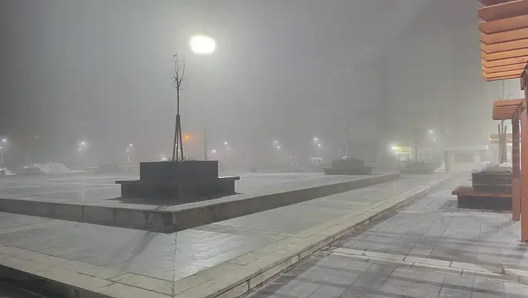 Ağrı'da 17 Şubat gecesi yoğun sis etkili oldu, görüş mesafesi düştü.