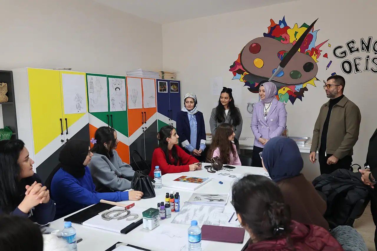 Ağrı Valisi Mustafa Koç'un eşi Neslihan Gül Koç, Halk Eğitim Merkezi ve Gençlik Merkezi iş birliğiyle İbrahim Çeçen Üniversitesi Genç Ofisi'nde yürütülen kursları ziyaret ederek kursiyerlerle bir araya geldi.