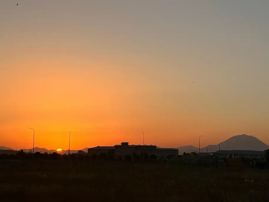 Özellikle Kösedağ ile güneşin batışının aynı karede yer aldığı manzara, görsel bir şölen sundu. Bu eşsiz manzara, Ağrı Eğitim ve Araştırma Hastanesi’nin arka tarafından çekilen fotoğraflarda net bir şekilde görüldü. Güneşin kızıl tonlarla batışı, gökyüzünün mavisiyle birleşince ortaya kartpostallık kareler çıktı.