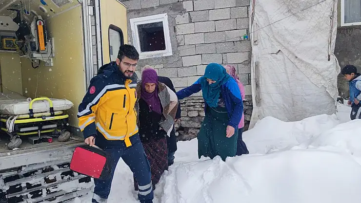 Yardım talebi üzerine paletli ambulansla yolu kapalı olan köye uzun uğraşlar sonucu ulaşan sağlık ekipleri, düşük riski yaşayan hastayı, yolu açık olan Karadoğu köyünde kendilerini bekleyen normal ambulansa ulaştırdı.