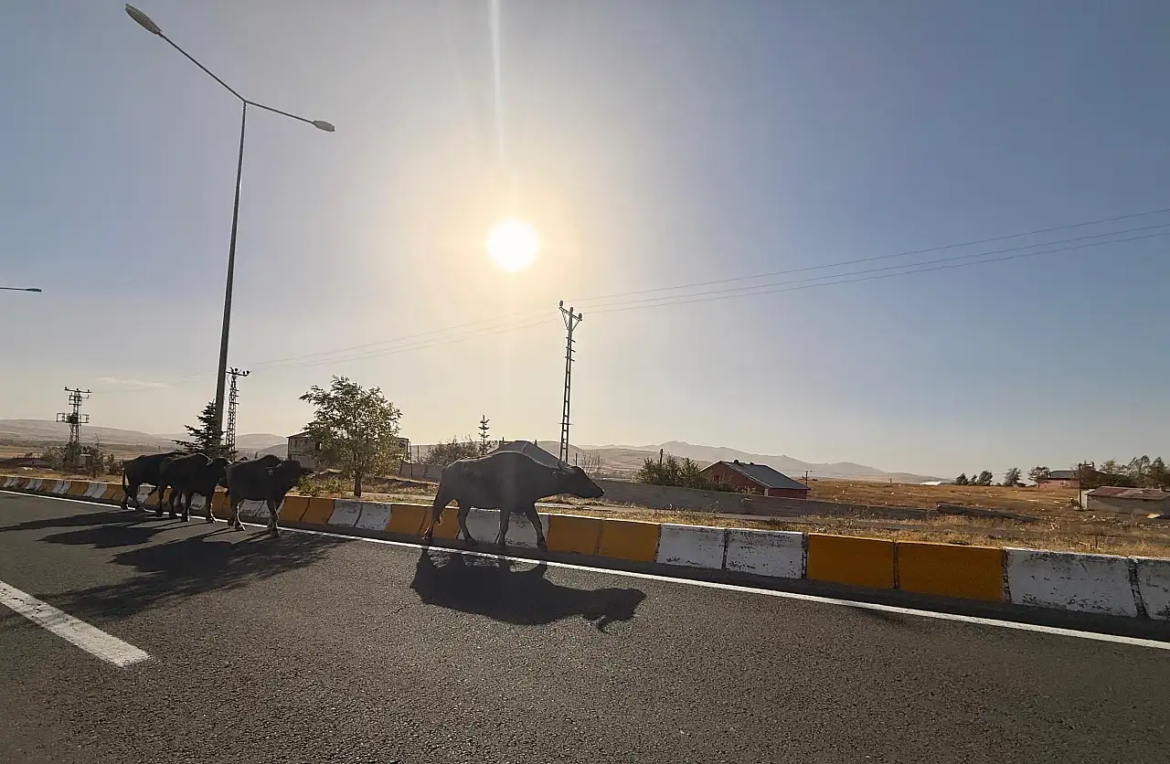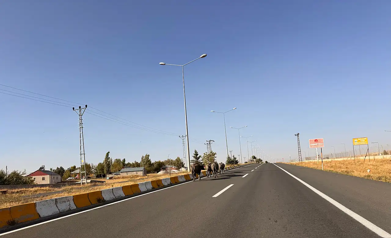 Şehir merkezinden havaalanı yönüne giden karayolunda sabah erken saatlerde birkaç büyükbaş hayvanın yola çıktığı görüldü. Başlarında çoban bulunmayan hayvanlar bir süre yolun ortasında ilerleyerek trafiğin yavaşlamasına neden oldu. Özellikle işe gitmek için sabah saatlerinde yola çıkan sürücüler, bu durum karşısında zor anlar yaşadı.