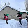 Kızılay gönüllüleri, Ağrı'da dondurucu soğuklara rağmen 63 aileye 25 ton kömür ulaştırdı.