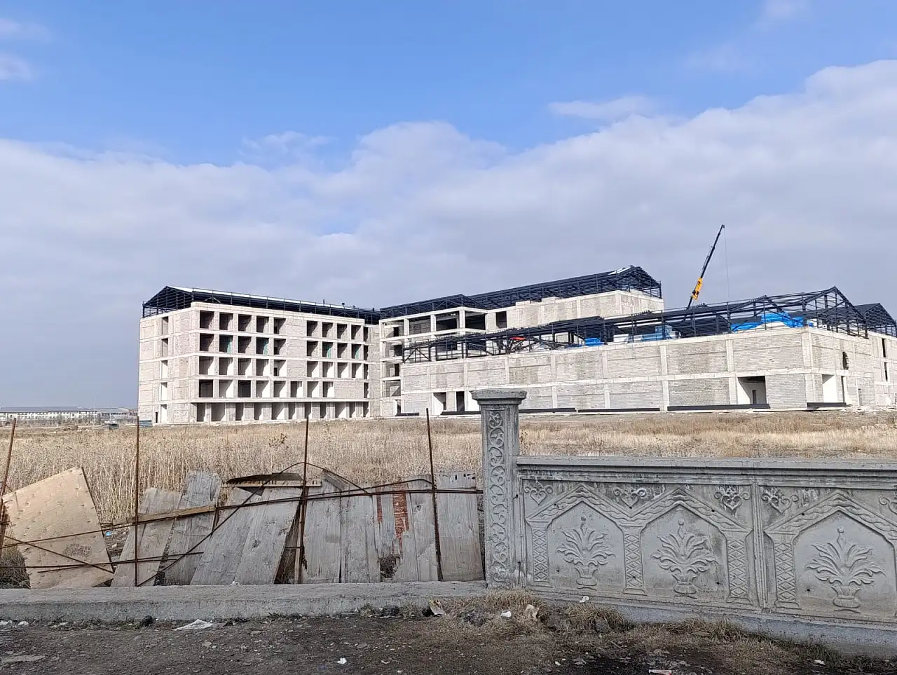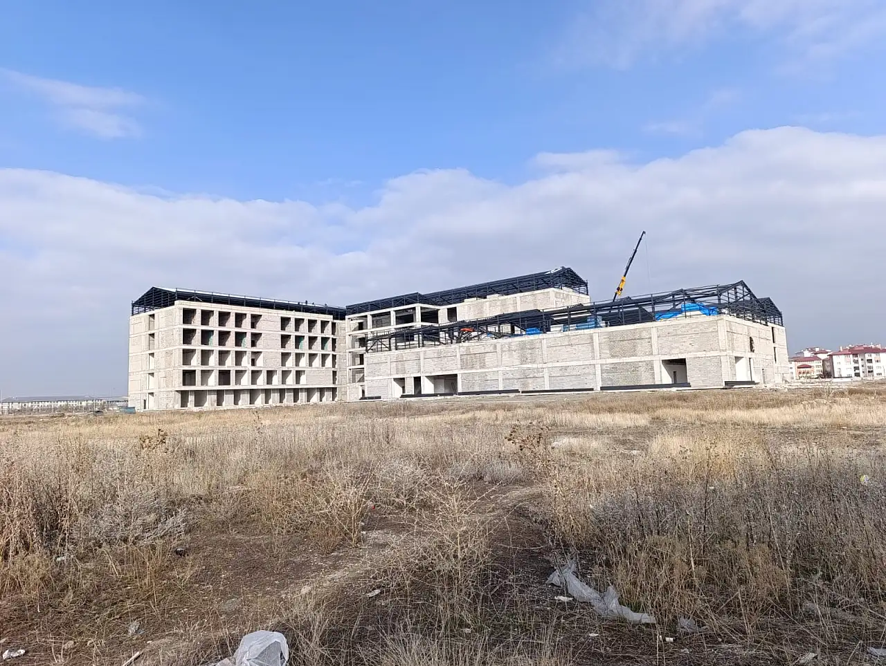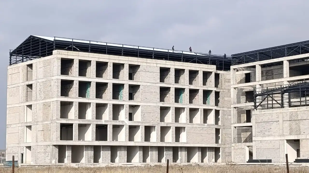 Ağrı'da yapımı süren Merkez Kadın Doğum ve Çocuk Hastanesi'nde çatı montajları tamamlandı, inşaat çalışmaları hızla ilerliyor.