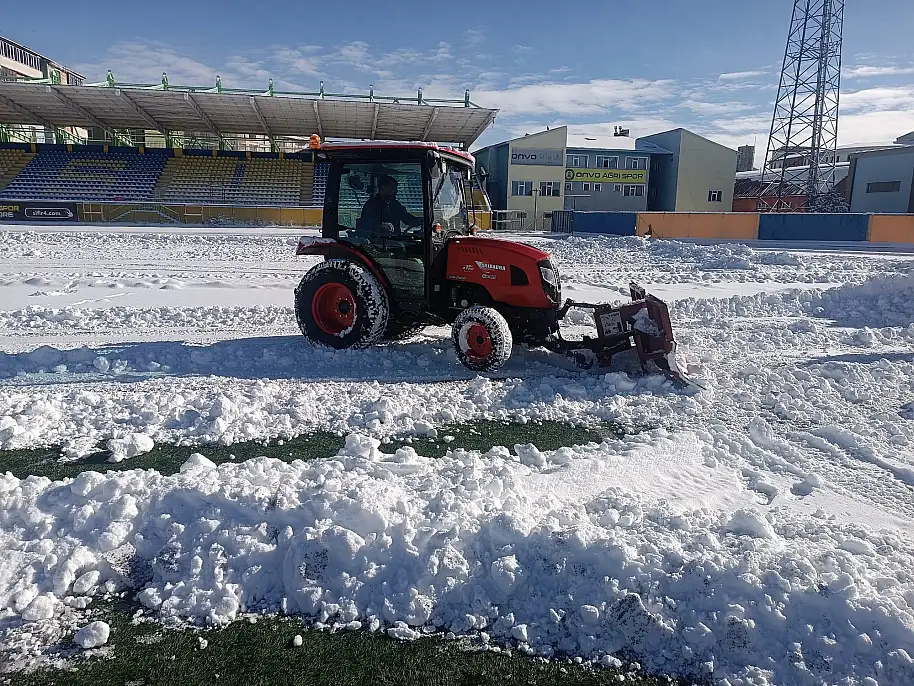 Kar yağışından etkilenen alanlardan biri olan Vali Lütfi Yiğenoğlu Stadyumu’nda sabah saatlerinden itibaren kar temizleme çalışmaları başlatıldı. Sahada ve tribünlerde biriken karın temizlenmesi için Ağrı Gençlik ve Spor İl Müdürlüğü ekipleri yoğun mesai harcadı. Zeminin maç oynanabilir hale getirilmesi amacıyla kar küreme ve temizlik çalışmaları sürdürülürken, saha şartlarının sürekli kontrol edildiği öğrenildi.