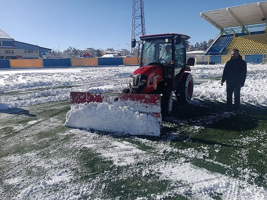 Ağrı'da kar sonrası stadyumda yoğun mesai