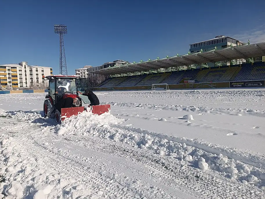 Ağrı'da kar sonrası stadyumda yoğun mesai