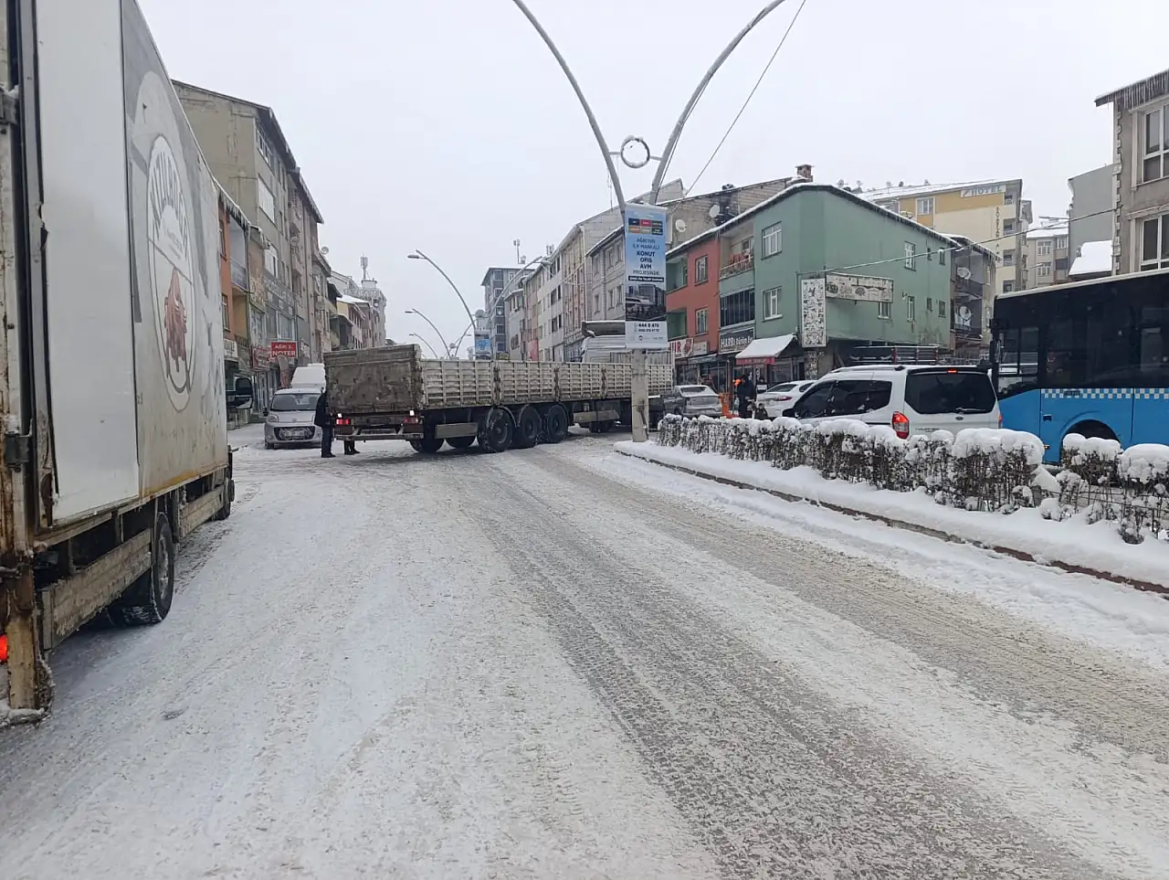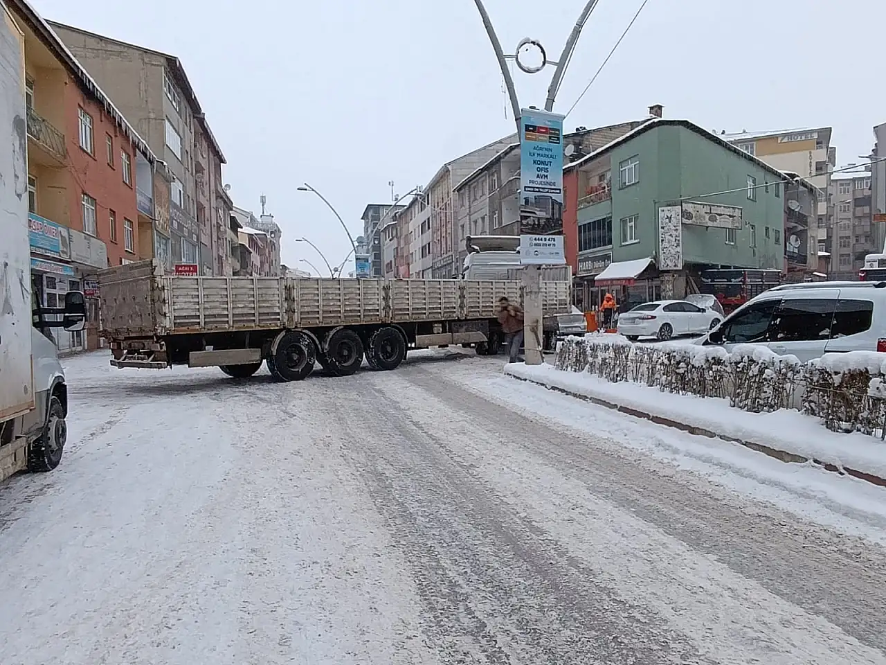 Ağrı şehir merkezindeki dar alanlarda, kar nedeniyle yollarda birikintiler oluşmuş ve bu durum araçların geçişini engellemiş. Özellikle kısa araçlar, yollarda manevra yaparak ilerlemekte zorlanıyor. Bunun yanı sıra, uzun araçlar, özellikle TIR ve kamyonlar, dar cadde ve sokaklarda dönüş yapmakta zorlanarak trafikte sıkışıklıklara yol açıyor.