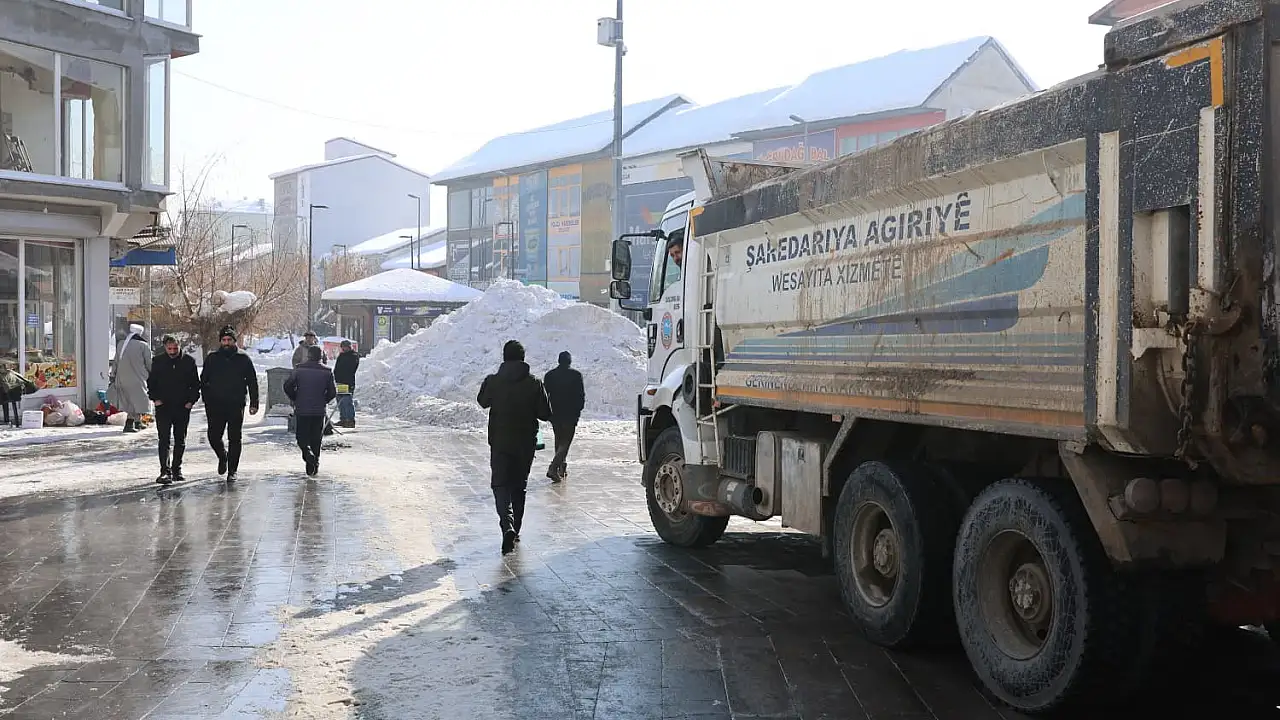 Yoğun kar yağışı sonrası Ağrı'da şehir genelinde kar temizleme çalışmaları sürüyor.