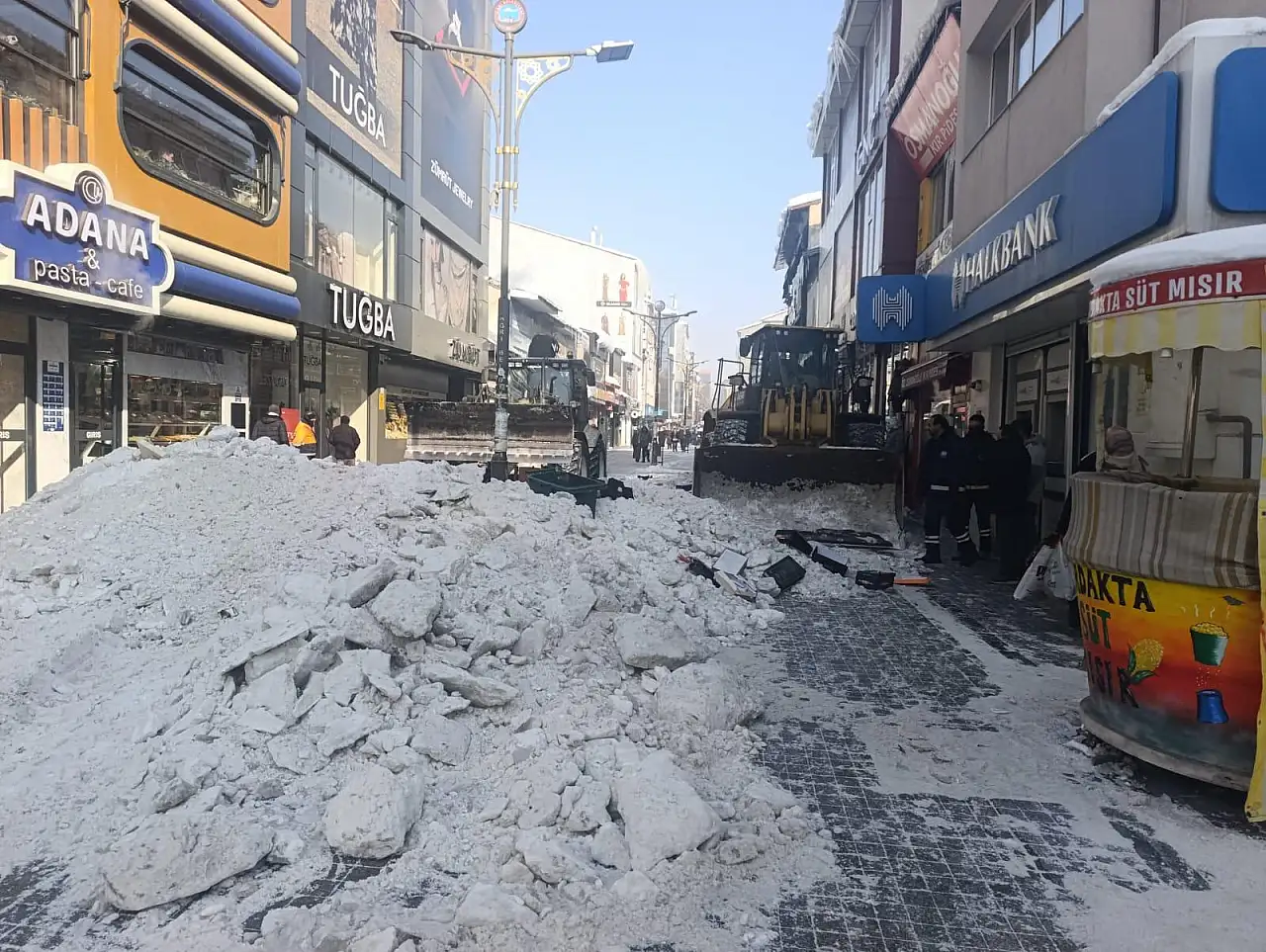 Özellikle Cumhuriyet Caddesi üzerinde biriken kar kütleleri, kentin kış manzarasını gözler önüne serdi.