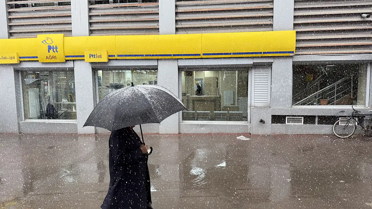 Ağrı'da karla karışık yağmur etkisini gösterdi.Cumhuriyet Caddesi'nde vatandaşlar ani yağışa hazırlıksız yakalandı.