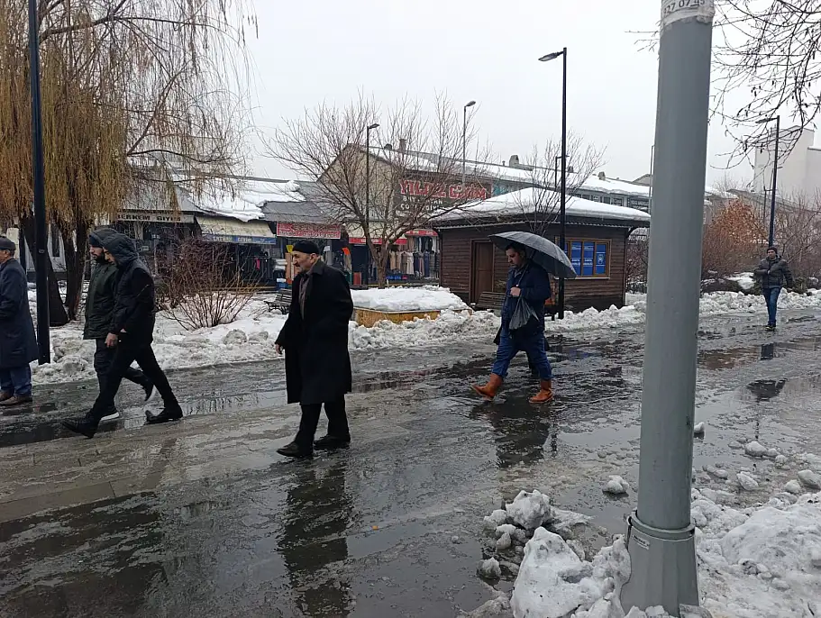 Ağrı'da ocak ayının son günlerinden itibaren artan hava sıcaklığıyla birlikte çatılardaki kar ve buzlar erirken, şubat ayının ilk günlerinde etkili olan yağmur hem yayalara hem sürücülere zor anlar yaşattı.