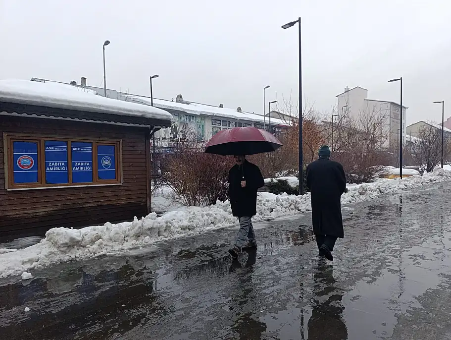 Ağrı'da ocak ayının son günlerinden itibaren artan hava sıcaklığıyla birlikte çatılardaki kar ve buzlar erirken, şubat ayının ilk günlerinde etkili olan yağmur hem yayalara hem sürücülere zor anlar yaşattı.