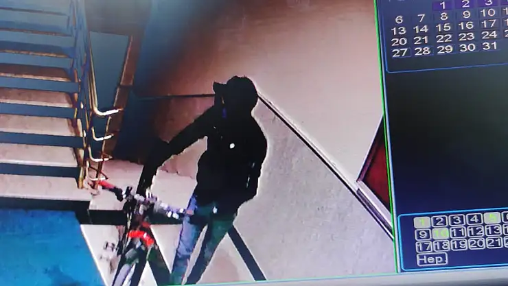 Ağrı'da sokağa çıkma kısıtlamasında bir apartmandan bisiklet çalan hırsızlar, güvenlik kameralarına yakalandı.