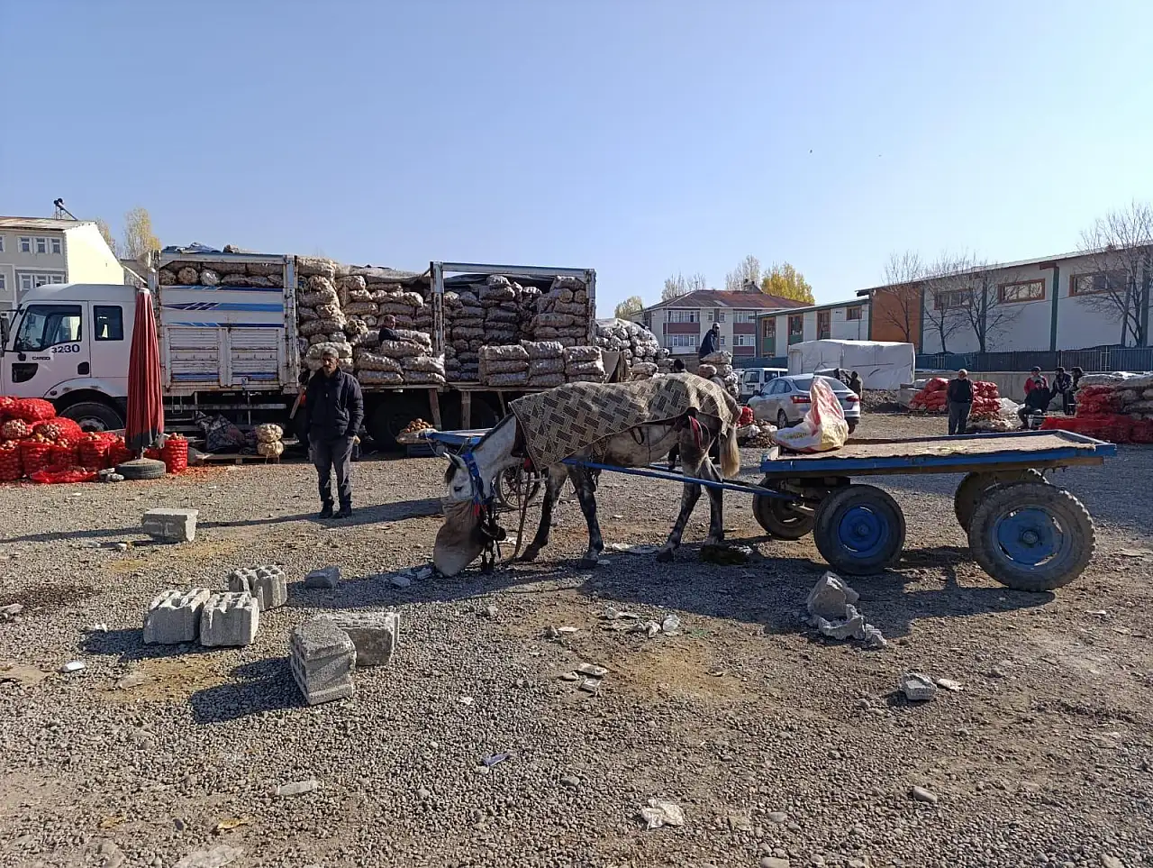 Ağrı'da havaların soğumasıyla birlikte vatandaşlar kış hazırlıklarına başladı. Sabahın erken saatlerinden itibaren Meydan Sebze Pazarı'nın arka kısmında yoğunluk yaşanıyor.