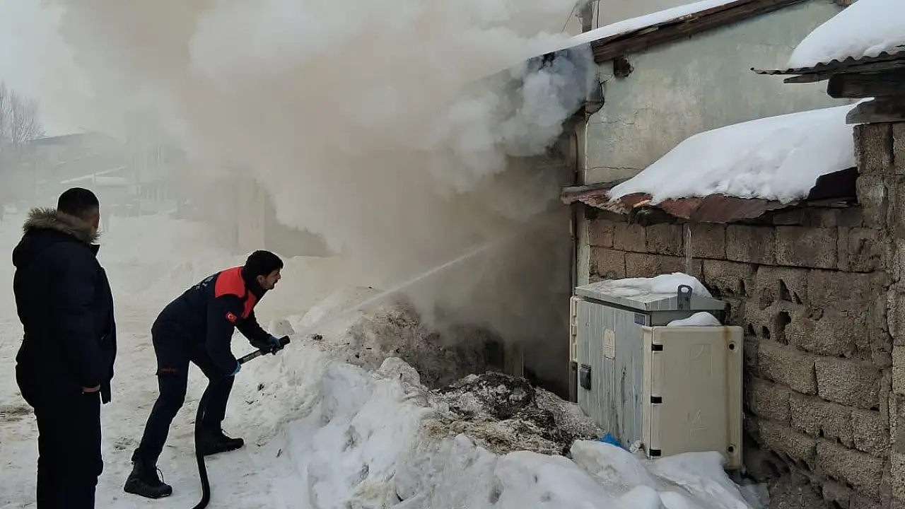 Ağrı'da kömürlükte çıkan yangın itfaiyeyi harekete geçirdi
