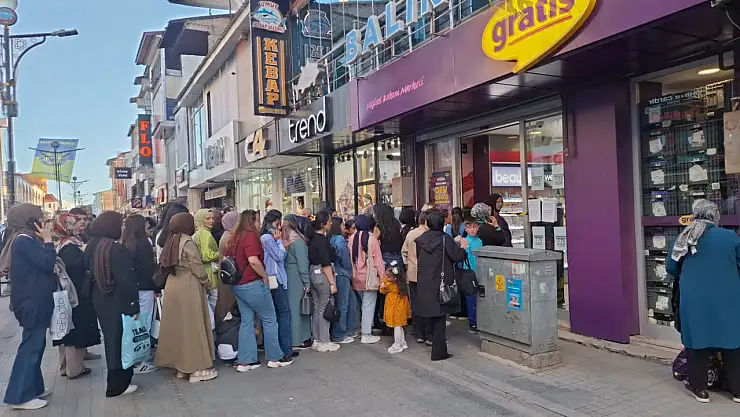 Ağrı'da kozmetik mağazası önünde indirim kuyruğu oluştu