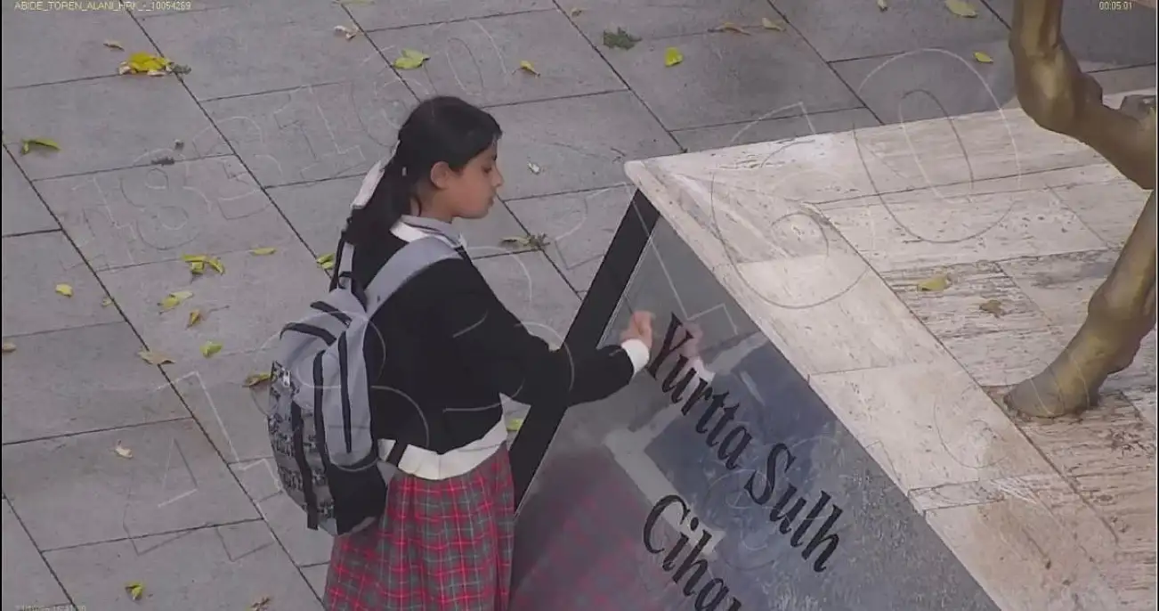 Abide Meydanı'nda Atatürk büstünü temizleyip asker selamı veren minik Asmin, davranışıyla gönülleri kazandı.