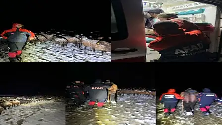 Ağrı Merkeze bağlı Dede Maksut Köyünde kar yağışı ve tipi nedeni ile merada mahsur kalan 3 çoban ve 3 bin koyun ekipler tarafından kurtarıldı.