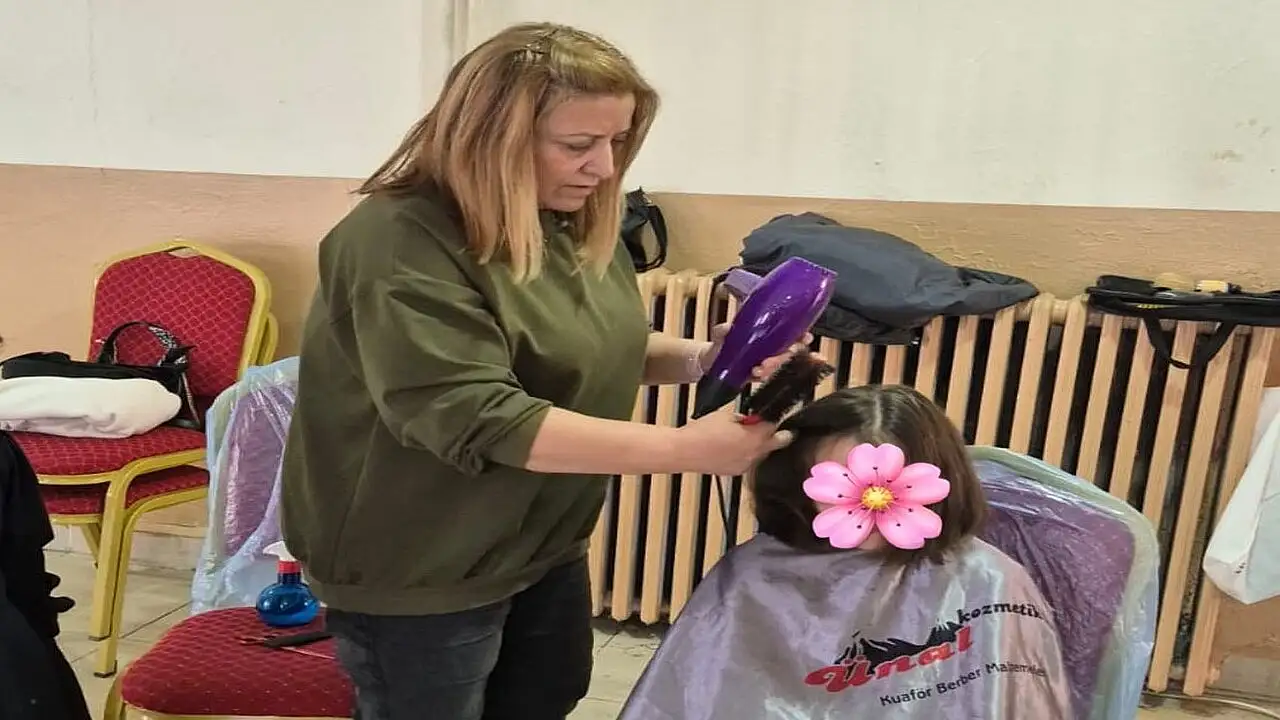 Okul yönetimi tarafından belirlenen öğrenciler, öğretmenlerin refakatiyle sırayla saç kesimi için alana alındı. Program boyunca öğrencilerin heyecanlı oldukları gözlenirken, velilerin de etkinliği olumlu karşıladığı ifade edildi. Saç kesimlerinin ardından çocuklara çeşitli ikramlar dağıtıldı.